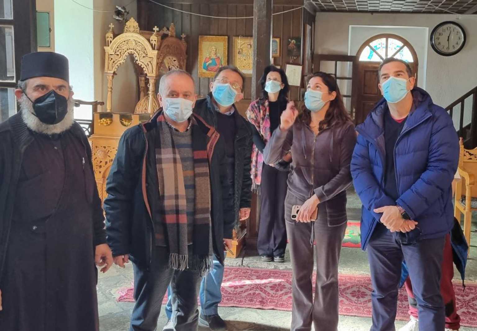 Ο πρώην πρωθυπουργός ξεναγήθηκε στο εκκλησάκι του Αϊ Γιώργη και στο μικρό λαογραφικό μουσείο του χωριού, ενώ περπάτησε στα καλντερίμια και χάρηκε στιγμές με τα παιδιά του.