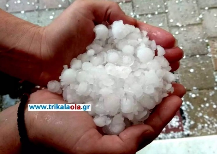 Ο καιρός έδειξε τα… δόντια του και στα Τρίκαλα όπως σε πολλές περιοχές της χώρας. Βαριά σύννεφα, κυρίως στα ανατολικά της πόλης των Τρικάλων, έφεραν χαλάζι στο μέγεθος ενός φουντουκιού.