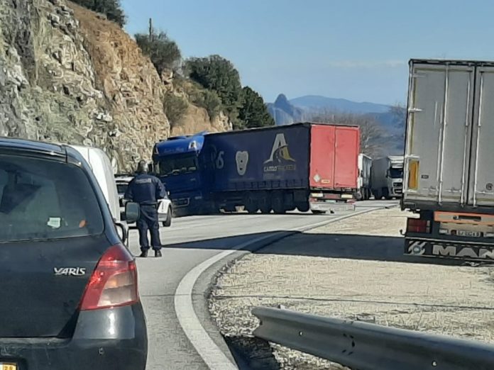 Όπως κατέγραψε το trikalavoice.gr νταλίκα με Αλβανικές πινακίδες εξετράπη της πορείας της και δίπλωσε στη μέση του δρόμου.