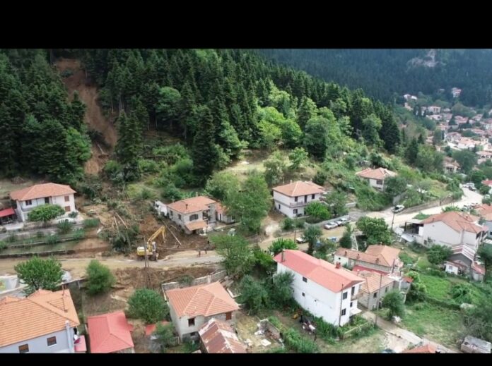 Οι κατολισθήσεις κατάπιαν μέρος του χωριού, ενώ ορμητικός χείμαρρος διέλυσε το φράγμα μεταξύ Ελάτης και Καλογήρων.