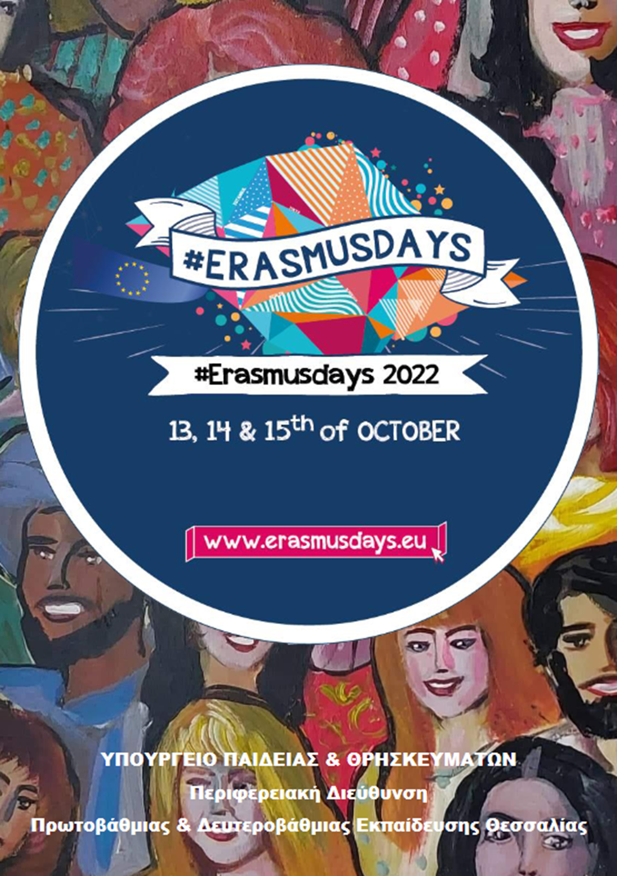 Η Περιφερειακή Διεύθυνση Πρωτοβάθμιας και Δευτεροβάθμιας Εκπαίδευσης Θεσσαλίας, στο πλαίσιο εορτασμού της πανευρωπαϊκής δράσης Erasmus Days και επιδιώκοντας να υποστηρίξει και να ενθαρρύνει τη συμμετοχή των σχολείων στα Ευρωπαϊκά προγράμματα ERASMUS, διοργανώνει την εκδήλωση «Ημέρες Erasmus 2022», η οποία θα πραγματοποιηθεί την Παρασκευή, 14 Οκτωβρίου 2022, στην πόλη των Τρικάλων και στον χώρο του Μουσείο Τσιτσάνη.