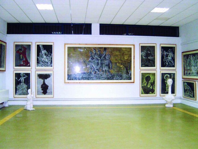 Οι επισκέπτες/τριες είδαν από κοντά μεγάλο αριθμό από τα εκατοντάδες έργα (γλυπτά και ζωγραφικής) που δώρισαν στον Δήμο Τρικκαίων ο καλλιτέχνης και η σύζυγός του, Λέγκω. Η προϊστάμενη του τμήματος Πολιτισμού της Δ/νσης Παιδείας, Πολιτισμού και Αθλητισμού του Δήμου Τρικκαίων κ. Μαρίζα Τσιούτσια παρουσίασε τα εκθέματα και το μουσείο, αναφερόμενη στη σημασία τους, στην τεχνοτροπία του καλλιτέχνη, στο νόημά τους, στις επιρροές του από τους κοινωνικούς αγώνες.
