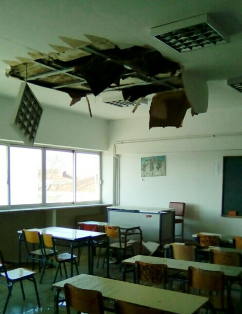 Απίστευτο περιστατικό στο 5ο Λύκειο Τρικάλων όπου οι μαθητές επέστρεψαν για μάθημα βρίσκοντας το ταβάνι σε μια από τις αίθουσες… πεσμένο, όπως φαίνεται στη φωτό του trikalavoice.gr.