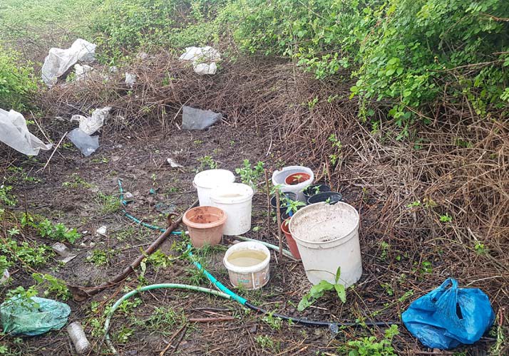 Στο χώρο της φυτείας βρέθηκαν, εκριζώθηκαν και κατασχέθηκαν συνολικά 26 δενδρύλλια κάνναβης, ύψους από πέντε έως τριάντα εκατοστά, φυτεμένα σε έξι γλάστρες, ενώ ακόμη κατασχέθηκε και ένα σκαλιστήρι.