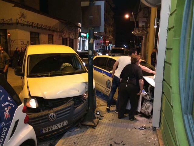 Όπως κατέγραψε το trikalavoice.gr φορτηγάκι που κινούνταν από την οδό Ζάππα παρέσυρε κυριολεκτικά το περιπολικό που διέρχονταν εκείνη την ώρα (λίγο μετά τις 10 το βράδυ) την οδό Μιαούλη και έπεσαν… και τα δυο μαζί πάνω σε άλλα σταθμευμένα αυτοκίνητα και μηχανάκια.