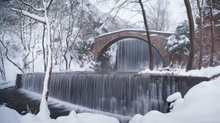 Το λευκό πέπλο έχει πέσει πάνω από το ιστορικό πέτρινο γεφύρι που κάποτε ένωνε τη Θεσσαλία με την Ήπειρο.
