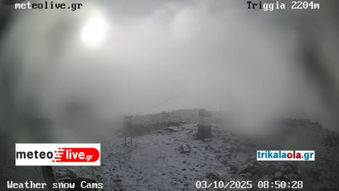 Ήρθε νωρίς το πρώτο χιόνι στα ορεινά των Τρικάλων και συγκεκριμένα στην συνήθης «ύποπτη» κορυφή της Τριγγίας (υψ. 2204 μ.) του δήμου Μετεώρων Τρικάλων, όπου σημειώθηκε ένα πασπάλισμα το βράδυ που μας πέρασε και η θερμοκρασία είναι στους -2 βαθμούς Κελσίου.
