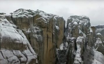 Η χιονισμένη Καλαμπάκα και τα Μετέωρα από ψηλά