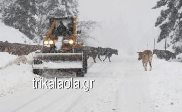 Αγελάδες βγήκαν στους χιονισμένους δρόμους των Τρικάλων και έφαγαν το… αλάτι