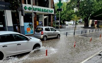 Ποτάμια οι δρόμοι στα Τρίκαλα μέσα σε λίγα λεπτά βροχής (φωτογραφίες)