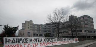 Πανό αλληλεγγύης προς τους εργαζόμενους του νοσοκομείου Τρικάλων