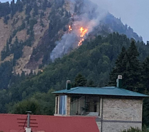 Επικίνδυνη αναζωπύρωση παρατηρείται την τελευταία ώρα στη φωτιά που σιγοκαίει από τη Δευτέρα στην κορυφή Μπουζιάρη πάνω από το δάσος Στουρναρέικων.