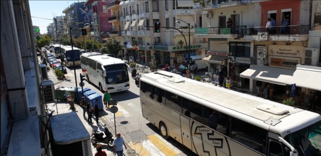 Κατέκλυσαν τους κεντρικούς δρόμους της πόλης με προορισμό την Καλαμπάκα και τα Μετέωρα οι ιδιοκτήτες τουριστικών λεωφορείων.