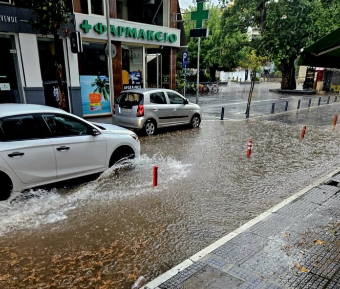 Σε τραγική κατάσταση οι δρόμοι των Τρικάλων μέσα σε λίγα λεπτά βροχής. Μετατράπηκαν σχεδόν στο σύνολό τους σε ποτάμια. Ο Θεός να βάλει το χέρι του το φθινόπωρο.
