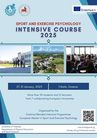 Στο ΤΕΦΑΑ του Πανεπιστημίου Θεσσαλίας, από τις 27 Ιανουαρίου έως τις 31 Ιανουαρίου, θα φιλοξενηθεί το “Intensive Course in Sport and Exercise Psychology-2025”, το οποίο είναι μια συνδιοργάνωση του προγράμματος Erasmus Blended Intensive Programmes και του Μεταπτυχιακού Προγράμματος «European Master in Sport and Exercise Psychology» του ΤΕΦΑΑ ΠΘ στα Τρίκαλα.