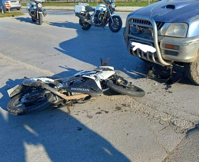 Όπως καταγράφει το trikalavoice.gr αγροτικό όχημα που κατέβαινε από την οδό Πύλης επιχείρησε να στρίψει αριστερά προς το σούπερ μάρκετ. Ο οδηγός της μοτοσυκλέτας κινούνταν από την αντίθετη κατεύθυνση και κάτω από συνθήκες που διερευνώνται έγινε η σύγκρουση.