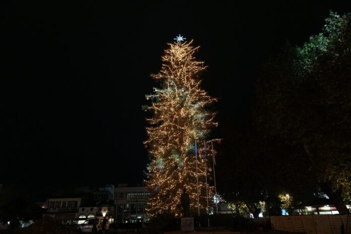 Στην τελική ευθεία για τις γιορτές των Χριστουγέννων μπήκαν από το βράδυ της Τετάρτης τα Τρίκαλα καθώς φωταγωγήθηκε το υψηλότερο φυσικό χριστουγεννιάτικο δέντρο της χώρας.