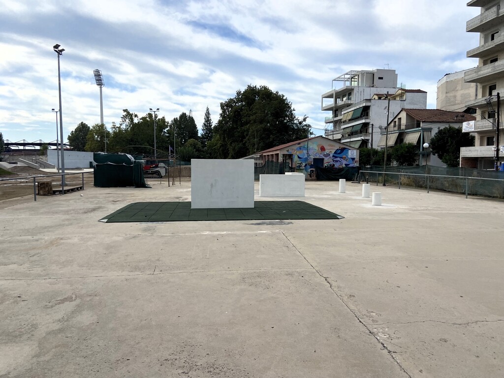 – πίστα Parkour με τσιμεντένια τοιχία, μεταλλικά στοιχεία, ελαστικό δάπεδο.
