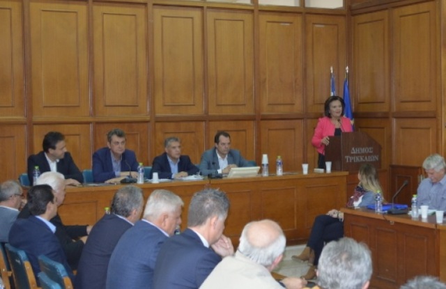 Στη συνέχεια ο Δήμαρχος Τρικκαίων κ. Παπαστεργίου καλωσόρισε με τη σειρά του την Υφυπουργό κ. Μ. Χρυσοβελώνη και το Γενικό Γραμματέα Υποδομών και απευθυνόμενος στους παρευρισκόμενους δήλωσε ότι όλοι οι φορείς συντεταγμένα θα πρέπει να ενεργήσουν προς μία κοινή κατεύθυνση ζητώντας από το αρμόδιο Υπουργείο την άμεση κατασκευή του έργου και την εξασφάλιση της χρηματοδότησής του.