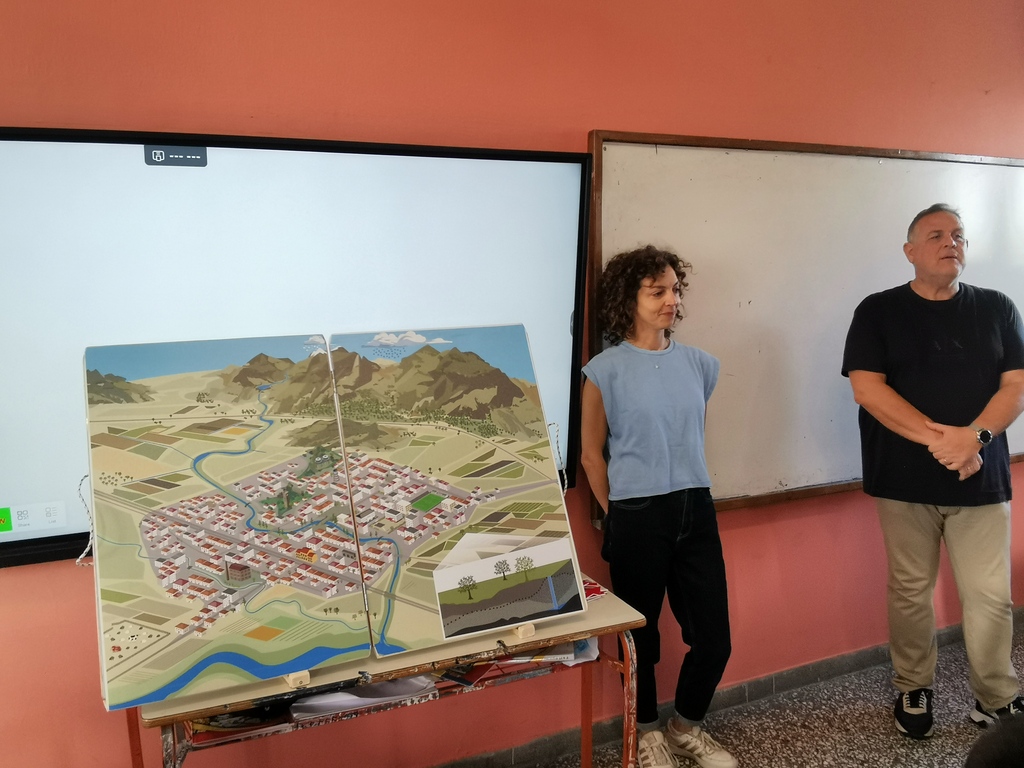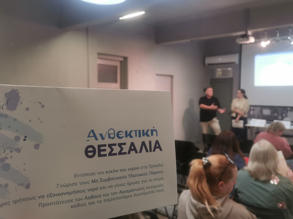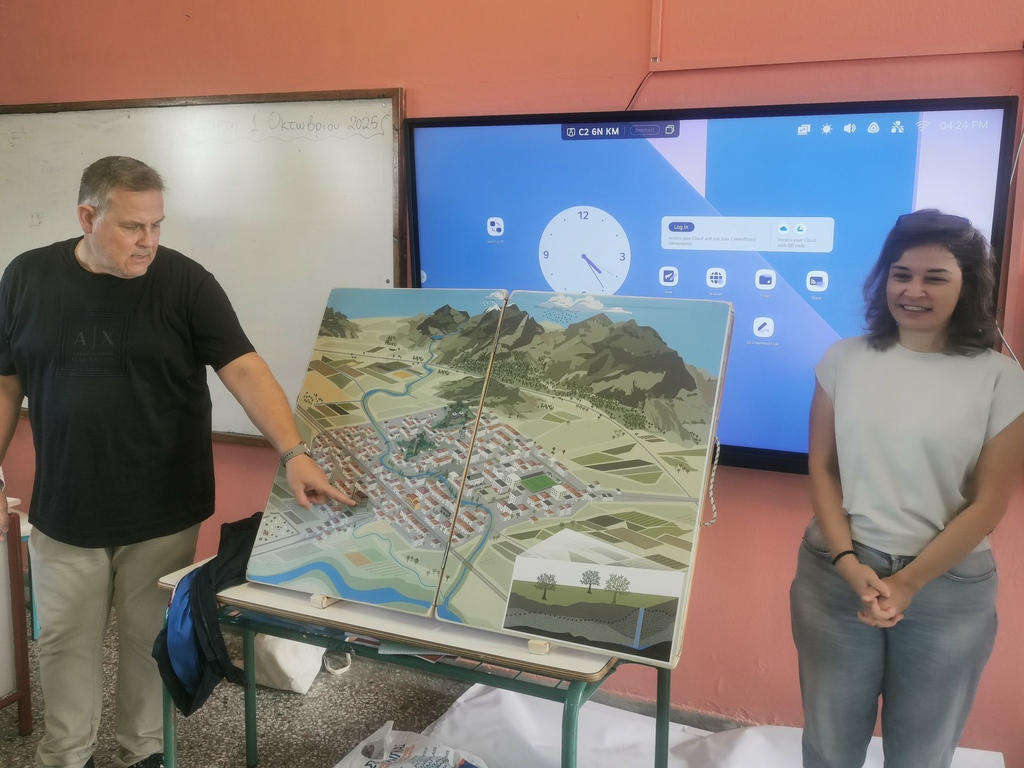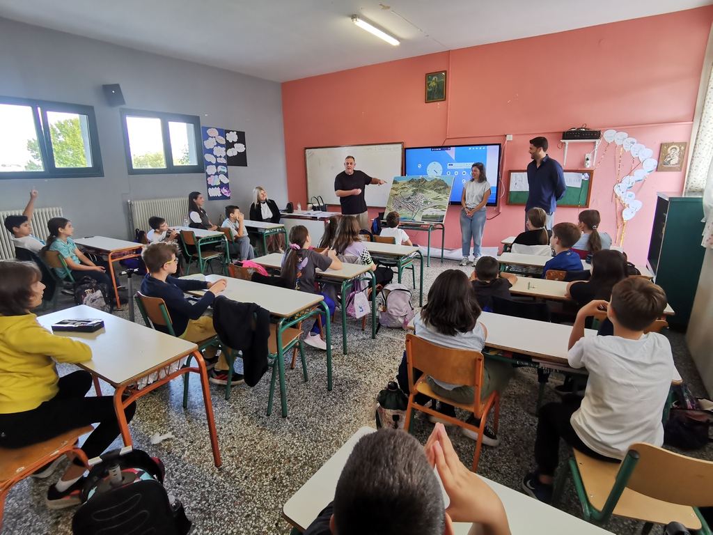 Η δεύτερη αφορά σε παρουσίαση παιχνιδιών, διαδραστικού πίνακα και σχετικού φυλλαδίου, σε μαθητές/τριες σχολεία. Στα σχολεία 5ο Δημοτικό Τρικάλων, 9ο Δημοτικό Τρικάλων, 27ο Δημοτικό Τρικάλων και Γυμνάσιο Βαλτινού, παρουσιάζονται στοιχεία με τρόπο απτό και κατανοητό για παιδιά από Δ΄ Δημοτικού έως Α΄ Γυμνασίου. Για παράδειγμα, με τον τίτλο «Το δώρο της βροχής / Το νερό στην πόλη» η δράση περιλαμβάνει βιωματική μάθηση και διαδραστικές δραστηριότητες, για να κατανοήσουν οι νέοι/εςτις επιπτώσεις της κλιματικής αλλαγής στην περιοχή μας. Επίσης, για να αναπτύξουν δεξιότητες και γνώσεις για την αποτελεσματική διαχείριση των φυσικών πόρων και την προστασία των κοινοτήτων από ακραία καιρικά φαινόμενα.