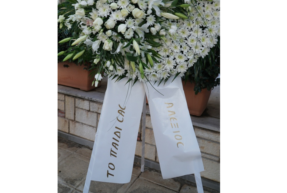 Το στεφάνι ανέγραφε το λιτό, αλλά ουσιαστικό “Το παιδί σας”.