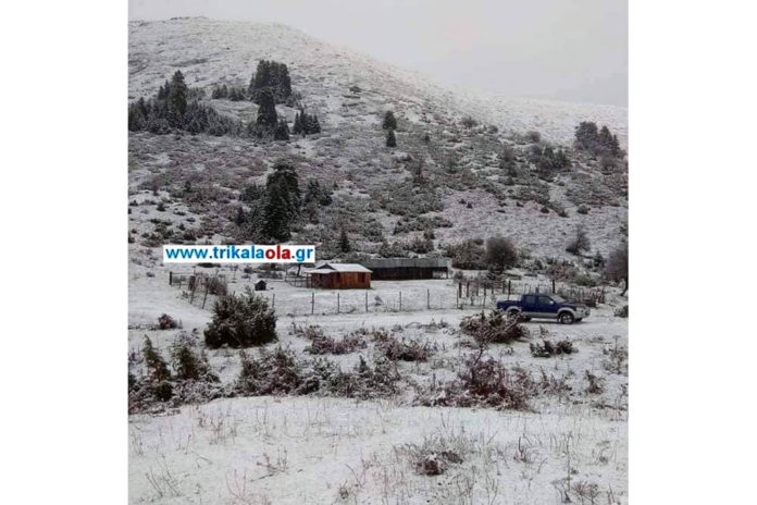Το πρώτο χιόνι αντίκρισαν σήμερα το πρωί, έστω και αργά χρονικά, οι κάτοικοι της περιοχής στα ορεινά των Τρικάλων και συγκεκριμένα στην κορυφή Τριγγία (ανάμεσα στα χωριά Κλεινοβός και Παλαιοχώρι Καλαμπάκας) που έχει υψόμετρο 2.200 μ.
