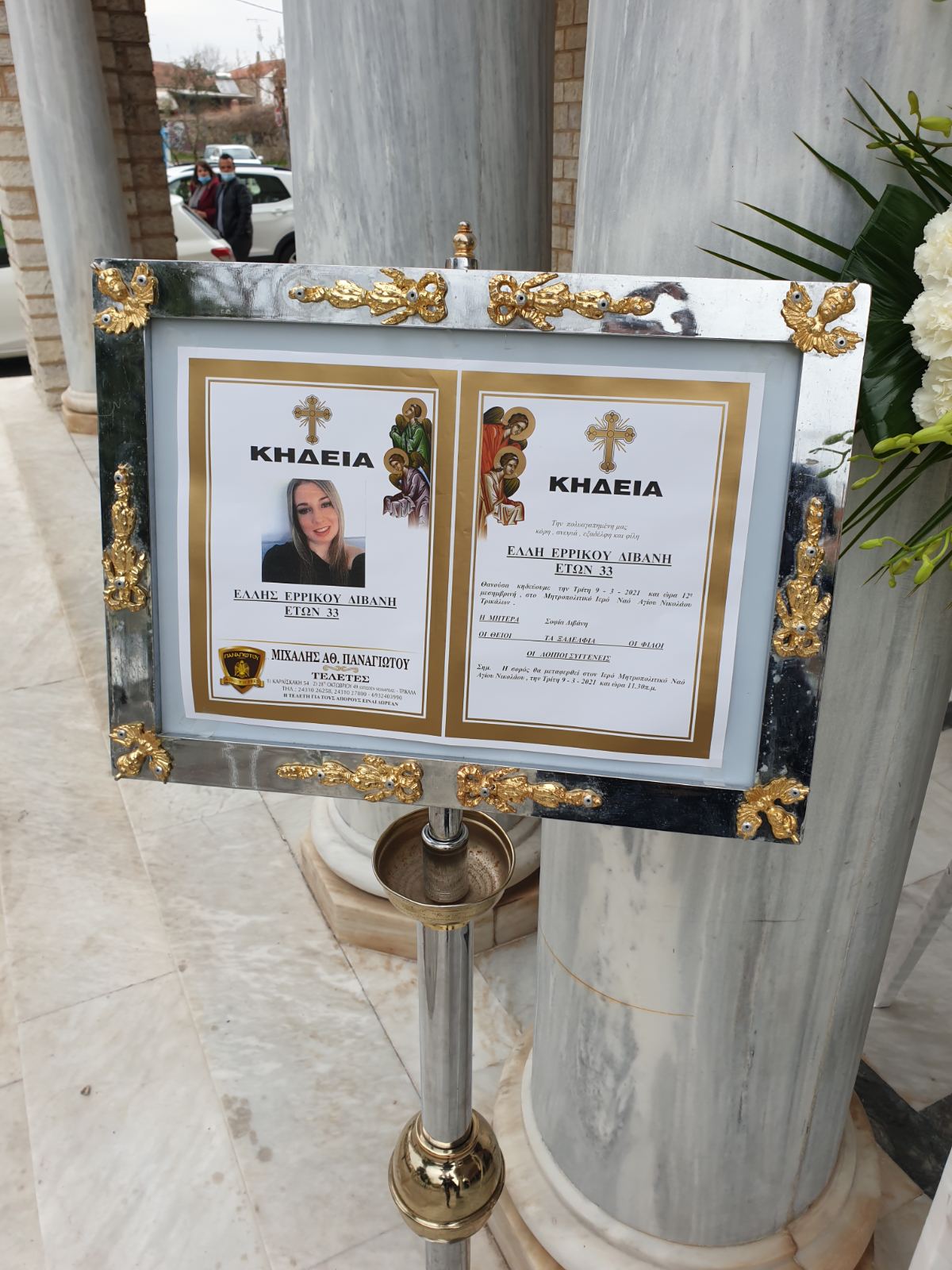 Το 33χρονο κορίτσι κηδεύτηκε το μεσημέρι της Τρίτης εκ του Ιερού Μητροπολιτικού Ναού Αγίου Νικολάου, πόλεως Τρικάλων, παρουσία 9 ατόμων εντός του Ναού, σύμφωνα με το πρωτόκολλο, και δεκάδων συγγενών και φίλων εκτός αυτού. Κόρη του αείμνηστου Ερρίκου Διβάνη, ο οποίος είχε συμβάλει αποφασιστικά στη γιγάντωση της αλυσίδας ξενοδοχείων “Διβάνη”, η Έλλη άφησε πίσω τη μητέρα της Σοφία και πολλούς φίλους που την αγάπησαν πολύ. Η ταφή έγινε στο Α΄ Κοιμητήριο της πόλης.
