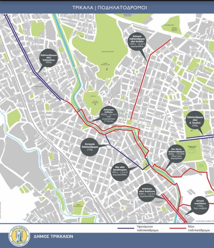 Ο Δήμος Τρικκαίων αυξάνει τα 8 χλμ. (7.950 μ. για την ακρίβεια) υπαρχόντων ποδηλατοδρόμων σε 19,5 χλμ. με έργα συνολικού προϋπολογισμού άνω των 7,5 εκ. €.