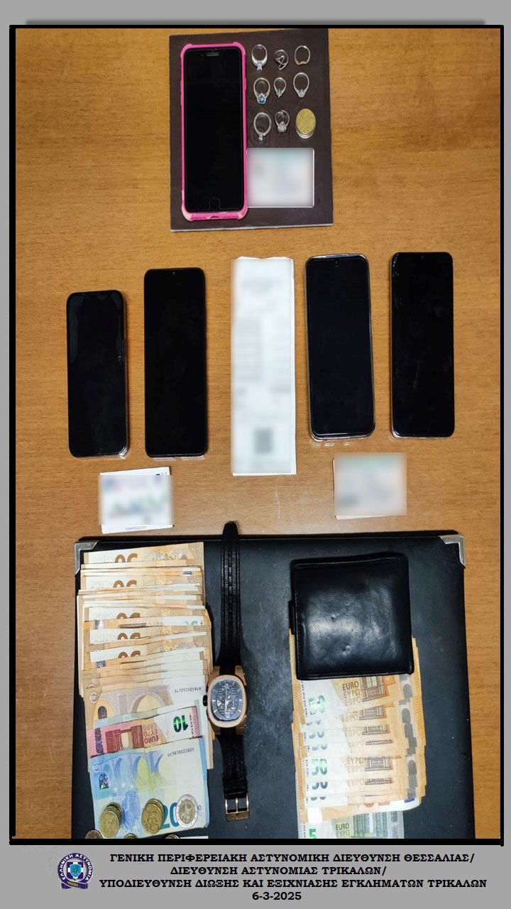 Εξακριβώθηκε, έπειτα από μεθοδική και συστηματική έρευνα της Υποδιεύθυνσης Δίωξης και Εξιχνίασης Εγκλημάτων Τρικάλων, η δράση εγκληματικής ομάδας, η οποία δραστηριοποιούνταν στη διάπραξη κλοπών κυρίως από κοσμηματοπωλεία σε περιοχές της Θεσσαλίας, της Στερεάς Ελλάδας και της Πελοποννήσου.
