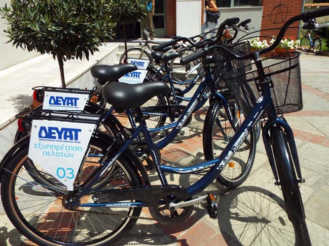 Πρόκειται για 4 ποδήλατα, στο πρότυπο της εξυπηρέτησης του Δήμου Τρικκαίων με τα αντίστοιχα κίτρινα ποδήλατα. Κάθε πολίτης που επιθυμεί να κάνει τις δουλειές του στην πόλη, θα μπορεί να τα προμηθεύεται από τα γραφεία της επιχείρησης, για 3 ώρες (στη διάρκεια των πρωινών ωρών λειτουργίας της ΔΕΥΑΤ) με την επίδοση της αστυνομικής του ταυτότητας. Η πολύ επιτυχημένη πρακτική του Δήμου Τρικκαίων επεκτείνεται και στη ΔΕΥΑΤ, αφού έχει αποδειχθεί ότι μειώνεται η κίνηση εντός πόλης από οχήματα και οι πολίτες μπορούν ταχύτερα να διεκπεραιώνουν τις εργασίες τους.