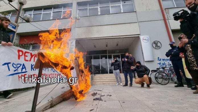 Σε μια συμβολική κίνηση, που δείχνει την οικονομική πίεση που δέχονται οι αγρότες προχώρησαν πριν από λίγο μπροστά από την ΔΕΗ τρικαλινοί αγρότες.