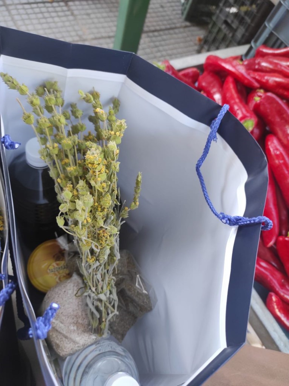 Εκεί ο “λαϊκάρχης” Νίκος Παπακώστας και ο Μπάμπης Μοσχόφογλου τους έδωσαν ένα πεσκέσι με προϊόντα της περιοχής μας (τσίπουρο, τραχανά, ακόμη και… σταμναγκάθι) για τον… πρόεδρο Μητσοτάκη!