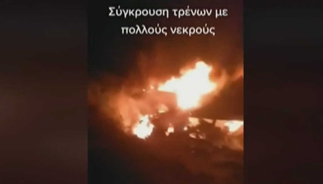 Βίντεο λίγα λεπτά μετά τη φονική σύγκρουση των τρένων στα Τέμπη.
