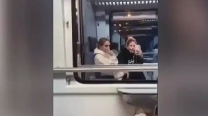 «Μάλλον, ποτέ ξανά με τρένο», ακούγεται να λέει η μία κοπέλα.
