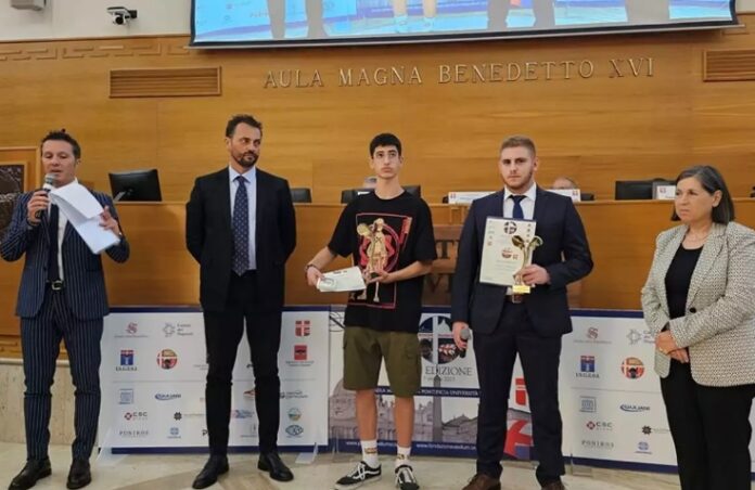 Η Αυτού Εξοχότης Πρέσβυς της Ελλάδας στο Βατικανό Κάτια Γεωργίου και ο Δρ. Επικοινωνίας Andrea Cicini βράβευσαν τον Ανδρέα Αλικανιώτη 20 ετών και τον Άγγελο Τσιαμούρα 19 ετών με το βραβείο Εθελοντισμού και Κοινωνικής Αλληλεγγύης σε μια φορτισμένη ατμόσφαιρα με το κοινό να χειροκροτεί όρθιο τους δύο ήρωες των Τεμπών.