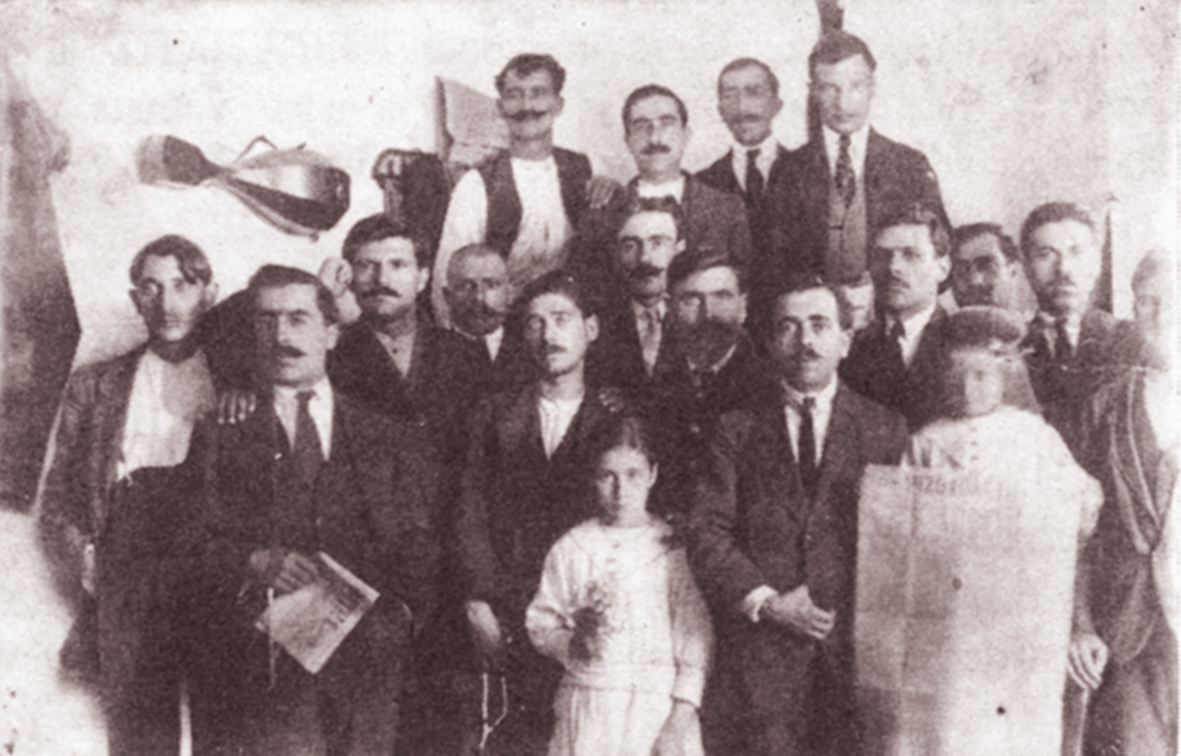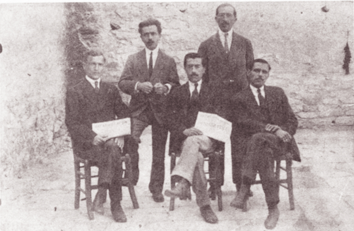 Όρθιοι: Αβραάμ Μπαναρόγια και ο Αντ. Σαρόγλου. Καθισμένοι: Σαμπετάϊ Λεβή, Θωμάς Αποστολίδης και Δ. Αδαμίδης
