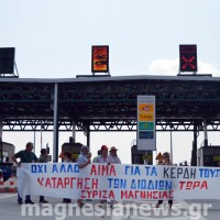 Πάρα πολλοί συμπολίτες προσκείμενοι στον ΣΥΡΙΖΑ κινητοποιήθηκαν και άφησαν για λίγο ελεύθερα να περνούν από τα διόδια του Μοσχοχωρίου χωρίς να πληρώνουν οδηγοί τον αντίτιμο των 4 ευρώ, σε ένδειξη διαμαρτυρίας για τα τρία παιδιά από το Στεφανοβίκειο και το Ριζόμυλο, που έχασαν τη ζωή τους στο δρόμο “φονιά” της παλαιάς Ε.Ο. Βόλου – Λάρισας τα ξημερώματα της Τετάρτης. Μαζί με τον Βουλευτή Μαγνησίας του ΣΥΡΙΖΑ Αλέξανδρο Μεϊκόπουλο, τον επικεφαλής της αντιπολίτευσης στο δημοτικό συμβούλιο Βόλου κ. Μαργαρίτη Πατσιαντά, τους δημοτικούς συμβούλους Νίκο Χαυτούρα, Κώστα Γαργάλα και Θωμά Κλημόπουλο και πάρα πολλούς συμπολίτες, διαμαρτυρήθηκαν με πανό ενάντια στα διόδια και μοιράζοντας ενημερωτικά φυλλάδια στους διερχόμενους οδηγούς ζητώντας να καταργηθούν τα διότι Μοσχοχωρίου. Οι συγκεντρωμένοι τόνιζαν ότι θα επανέλθουν και πάλι, διότι το πρόβλημα δεν λύνεται χωρίς αγώνα.