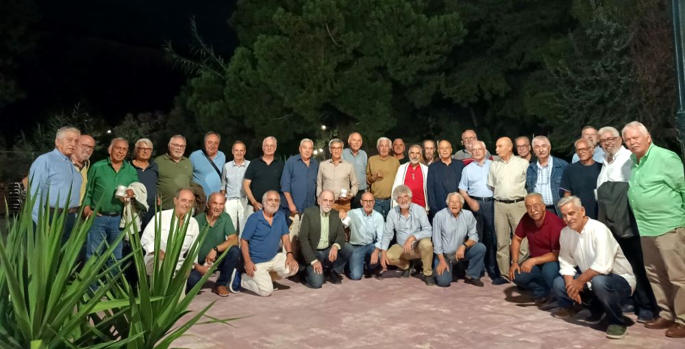 Στο ιστορικό παραλιακό κέντρο «Αύρα», στον Άναυρο, έναν χρόνο μετά τον καταστροφικό Daniel, στον στεγασμένο χώρο λόγω δυσοίωνων καιρικών προβλέψεων οι οποίες ευτυχώς δεν επιβεβαιώθηκαν, Παρασκευή βράδυ, 20 Σεπτεμβρίου 2024, παρόντες οι κ.κ.: Αντωνίου Κώστας, Αποστόλου Απόστολος, Βαρδάκης Αγησίλαος, Βολιώτης Βλάσης,Γκίκας Κώστας, Γραμματίκας Χαράλαμπος (από την Ιταλία, πρώτη φορά), Δασκάλου Λευτέρης, Δουκαντζής Κώστας, Θεοδώρου Γιάννης, Ιωάννου Σάκης, Καϊμάκης Αλέξης (από την Αθήνα), Καλλίας Ανδρέας, Καλλίας Παντελής, Κατσιόπουλος Τάσος, Μαγειράκος Απόστολος, Μπακογιάννης Χαράλαμπος (από την Αθήνα), Παράσχης Κώστας (από την Καρδίτσα), Πατσαντάς Σωτήρης, Πέσχος Σταύρος (από την Αθήνα), Πετσάλας Βαγγέλης (από την Αθήνα), Πρίτσας Σταύρος, Ροβίθης Μιχάλης, Σδουκόπουλος Αποστόλης, Σκυργιάννης Χαράλαμπος, Σούρλας Πέτρος,Σωτήρης Γιώργος, Τσώκος Γιάννης,Φιλιππιτζής Γιάννης, Φράγκος Γιάννης, Χαλβατζής Σταμάτης (από την Θήβα), Χατζηβαγγέλης Βαγγέλης, Χατζηγιάννης Βαγγέλης, Χατζηλάκος Θανάσης (από την Κύπρο), Χιώτογλου Γιάννης, Χλέμπος Δημήτρης.Σύνολο συμμαθητές 35 (μπορούμε και καλύτερα…). Οριστικά απόντες συμμαθητές τριάντα πέντε: Μιχάλης Αδαμάκης, Αποστόλης Αποστολίδης, Χρήστος Αϋφαντής, Νίκος Γκάνας, Κώστας Δημουλάς, Παναγιώτης Θεοδώρου, Δημήτρης Ζωντανός, Θόδωρος Καγιόπουλος, Κώστας Καρανικολός, Νίκος Κουκουσέλης, Γιώργος Κουτές, Νίκος Κωνσταντινόπουλος, Αλέκος Κωνσταντίνου, Αποστόλης Κωφός, Φίλιππος Μακρυγιάννης, Βαγγέλης Μαργώνης, Χρήστος Μιχαλόπουλος, Γιάννης Μουχτούπης, Μάνος Μπαλής, Μάνος Μπιρλιράκης, Νώντας Μωραϊτόπουλος, Νίκος Πανταζής, Χρήστος Παπαβασιλείου, Γιώργος Παππάς, Νίκος Παπασταυριανός, Θέμης Πλατιάς, Άγγελος Ραβανός, Βασίλης Σδούκος, Ζάχος Σιαφλέκης, Σταύρος Σκουλής, Δημήτρης Στάμος, Στέφανος Σχοινάς, Σταύρος Τριανταφύλλου, Γρηγόρης Τύμπας, Κυριάκος Τσίρος.