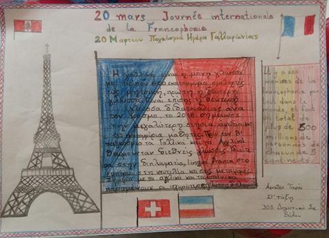 Η αναστολή της διά ζώσης λειτουργίας των σχολείων δεν απέτρεψε τους μαθητές/τριες του 30ου Δημοτικού Σχολείου Βόλου να συμμετέχουν με δράσεις τους στον εορτασμό της ημέρας Γαλλοφωνίας στις 20 Μαρτίου. Διαβάζοντας και μεταφράζοντας το ποίημα της Μαίρης Γαβαλά Τσακνάκη συμμετείχαν στην ημέρα γιορτής της γαλλόφωνης κουλτούρας μαζί με περισσότερους από 300 εκατομμύρια γαλλόφωνους σε όλο τον κόσμο, στις πέντε ηπείρους! Γιατί τα γαλλικά δεν είναι απλά μια γλώσσα, είναι πολιτισμός, είναι ιστορία, είναι αξίες, είναι μια κοινότητα που θέλει ένα καλύτερο κόσμο.