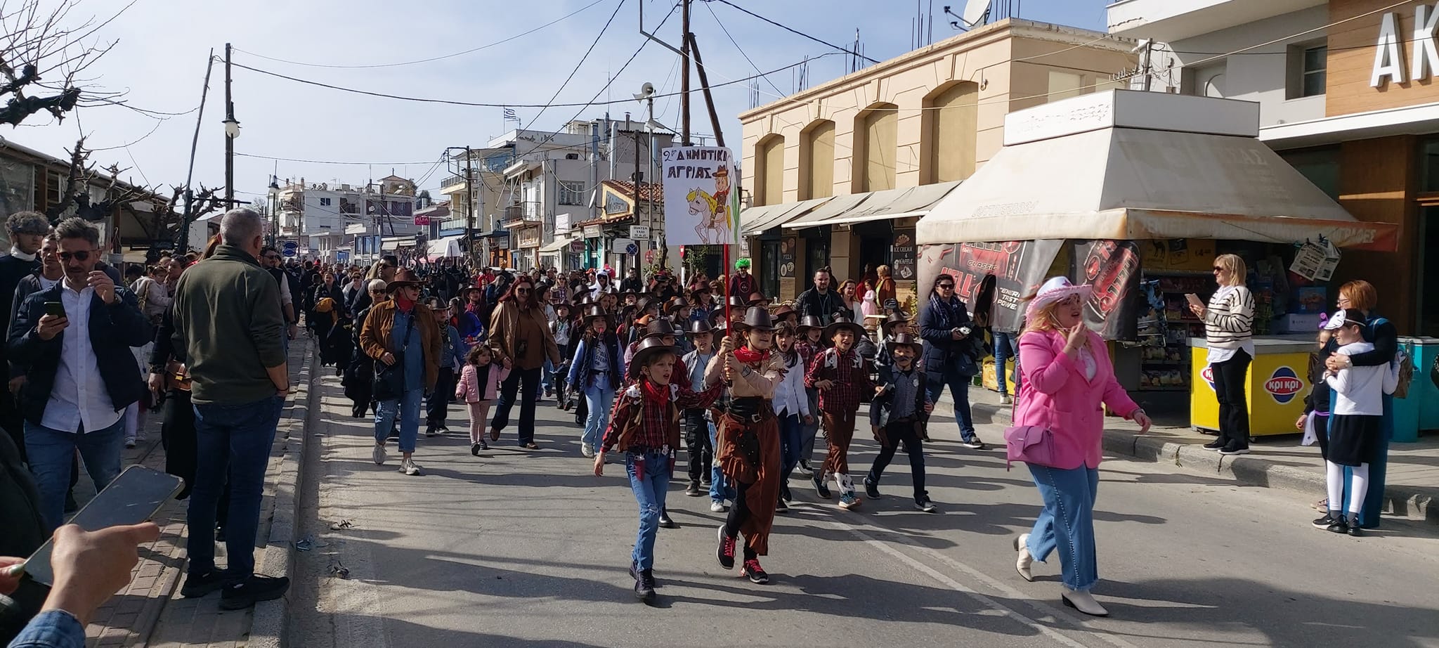 Την Κυριακή το μεσημέρι η Αγριά πλημμύρισε κόσμο, μιας και μικροί και μεγάλοι φόρεσαν τις αποκριάτικες στολές τους και συμμετείχαν στην καρναβαλική παρέλαση στην παραλία καταλήγοντας στο λιμανάκι όπου ακολούθησε μεγάλο πάρτι με μουσική και πολύ χορό.