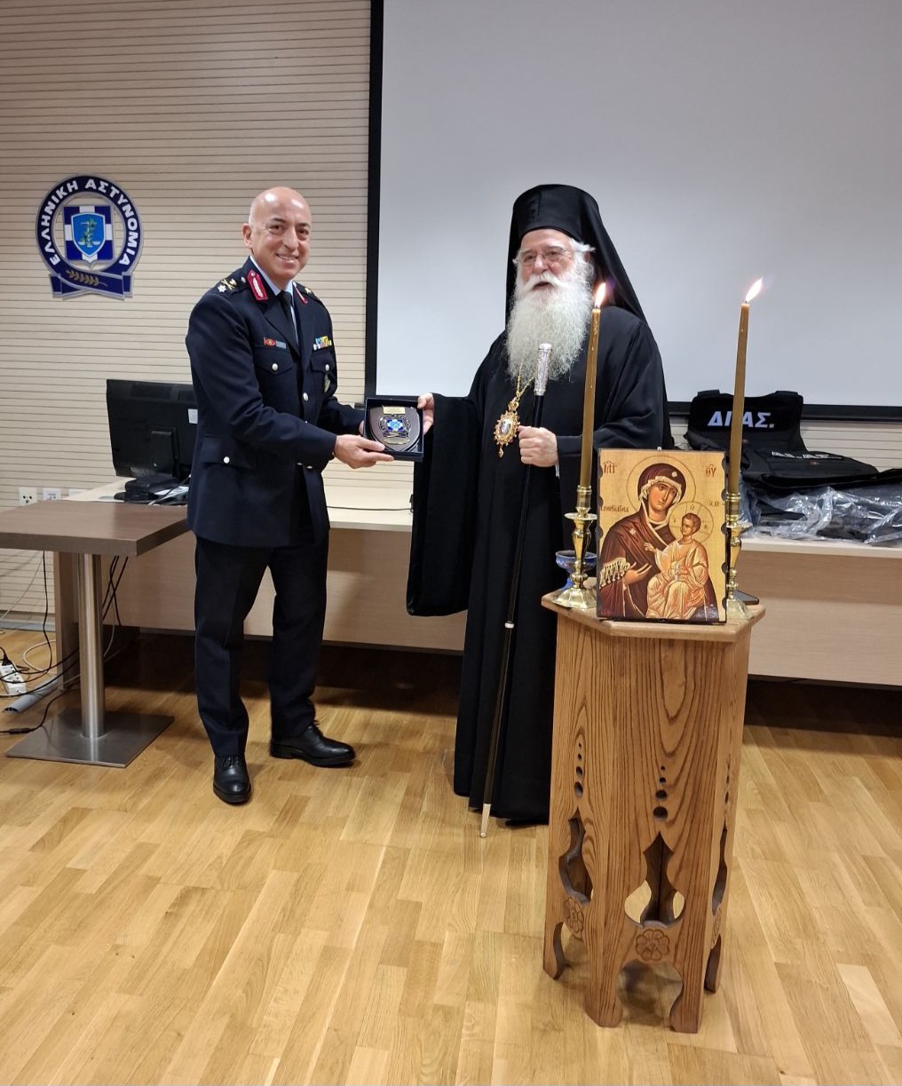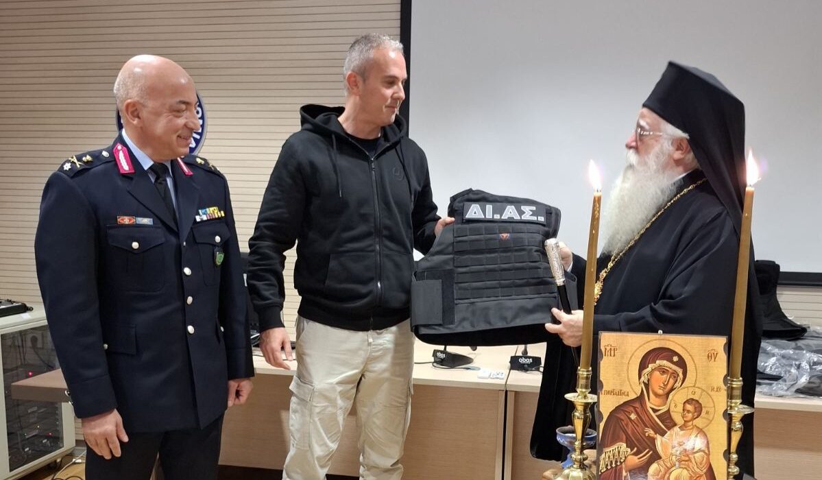 Στο τέλος της εκδήλωσης, ο Μητροπολίτης, παρέδωσε στην Ομάδα ΔΙΑΣ αλεξίσφαιρα γιλέκα και ευχήθηκε σε όλους «δύναμη, υγεία και προστασία από τον Θεό στην καθημερινή, δύσκολη αποστολή τους» ενώ εξέφρασε τις θερμές του ευχαριστίες για την συνεργασία και την προσφορά του Σώματος στην τοπική κοινωνία.
