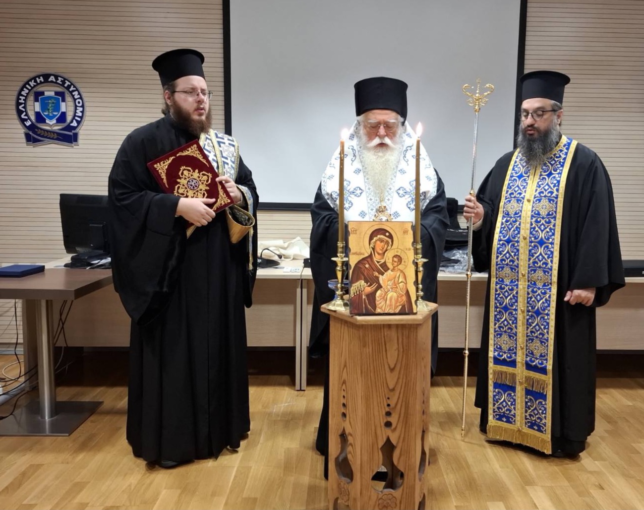 Τη Διεύθυνση Αστυνομίας Μαγνησίας επισκέφθηκε σήμερα Μητροπολίτης Δημητριάδος κ. Ιγνάτιος, όπου τέλεσε την Ακολουθία του Αγιασμού, παρουσία του Αστυνομικού Διευθυντή Μαγνησίας Ταξιάρχου κ. Γεωργίου Ντιζέ, καθώς και λοιπών διοικητών, αξιωματικών, υπαξιωματικών και στελεχών της Υπηρεσίας.