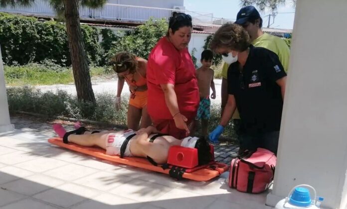 Στο σημείο έτρεξαν άμεσα οι ναυαγοσώστες της παραλίες, όπου διαπίστωσαν πως το παιδί είχε βαθύ τραύμα στο μάγουλο και το μέτωπο. Οι ναυαγοσώστες διαπίστωσαν πως ένα μεταλλικό αντικείμενο είχε καρφωθεί στο κεφάλι του παιδιού σε βάθος 3 εκατοστών!