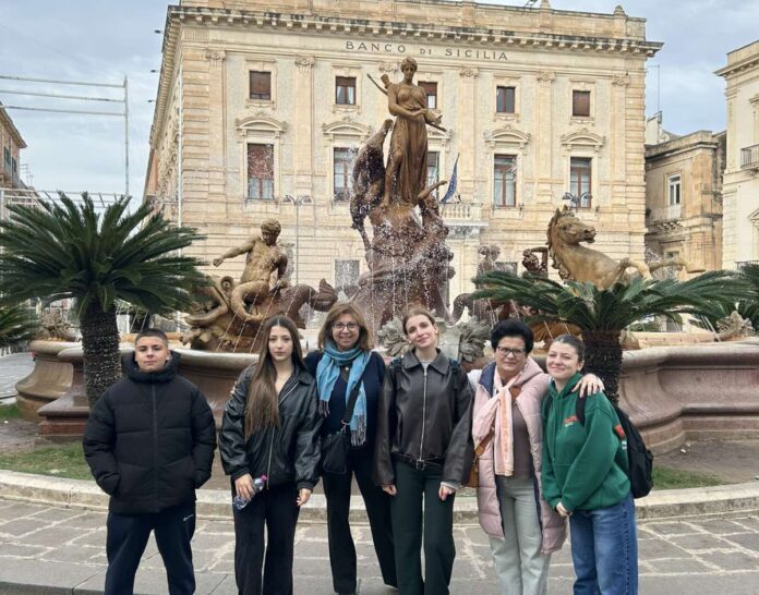 Οι ομάδες των μαθητών επισκέφτηκαν τις Συρακούσες και την Ορτυγία με την πλούσια αρχιτεκτονική, μια πόλη που ζει τη μακραίωνη ιστορία της και έδωσε στους μαθητές την αίσθηση της ισχυρής ελληνικής κληρονομιάς που επιβιώνει στην Ιταλία. Στο αρχαίο ελληνικό θέατρο των Συρακουσών- ένα από τα μεγαλύτερα ελληνικά θέατρα- οι μαθητές απήγγειλαν στίχους από το α΄στάσιμο της “Αντιγόνης” του Σοφοκλή, με τίτλο “Ωδή στον άνθρωπο”. Η ξενάγηση στο Αρχαιολογικό Πάρκο συνεχίστηκε με το ρωμαϊκό αμφιθέατρο και τα λατομεία του.