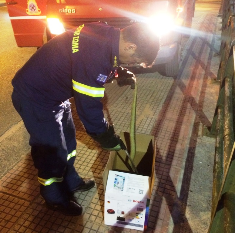 Οι πυροσβέστες πήγαν στο σημείο και απομάκρυναν το φίδι που είχε κουλουριαστεί σε μια γωνία κοντά σε λάστιχο.