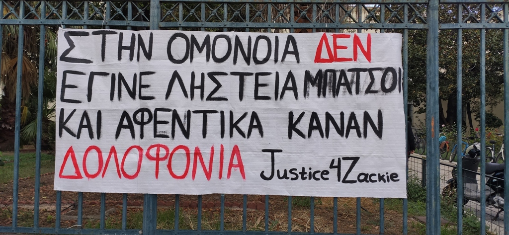 Σημειώνεται ότι στον εξωτερικό χώρο των Δικαστηρίων είχαν αναρτηθεί πανό αλληλέγγγυων συμπολιτών.