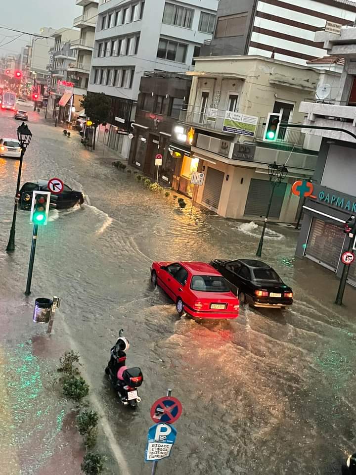 Με δυσκολία γίνεται απ΄το πρωί, η κίνηση των οχημάτων, ενώ είναι μεγάλος ο όγκος νερού, με συνέπεια να αναβλύζουν νερό τα φρεάτια στη Δημητριάδος!