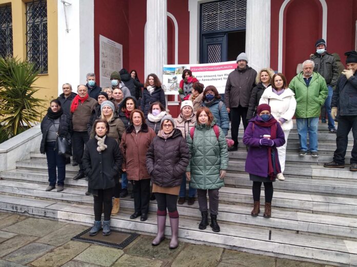Εργαζόμενες και εργαζόμενοι της Αρχαιολογικής Υπηρεσίας συγκεντρώθηκαν μετά τις 12 το μεσημέρι ωε ένδειξη διαμαρτυρίας, στον προαύλιο χώρο του Αρχαιολογικού Μουσείου Βόλου.