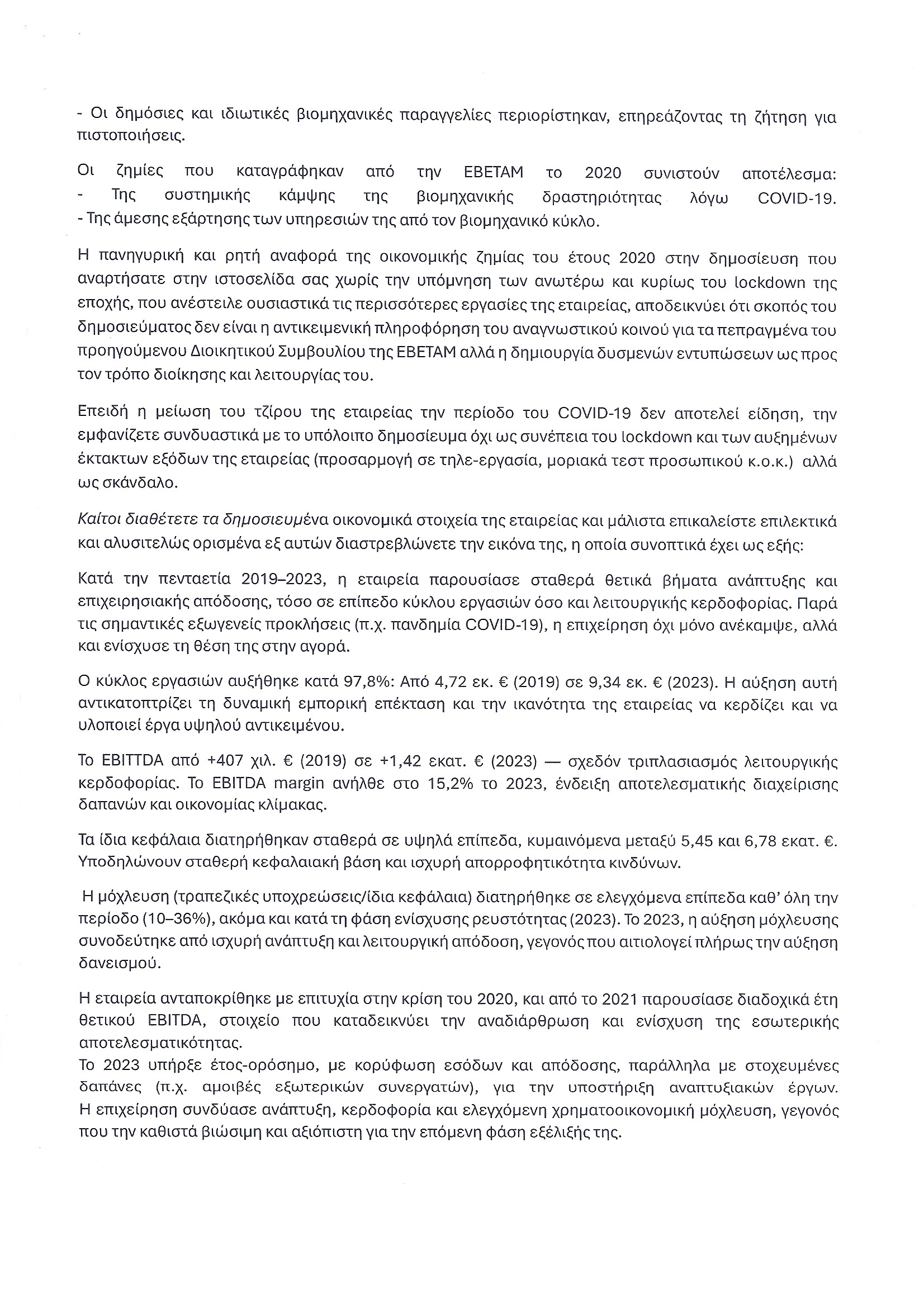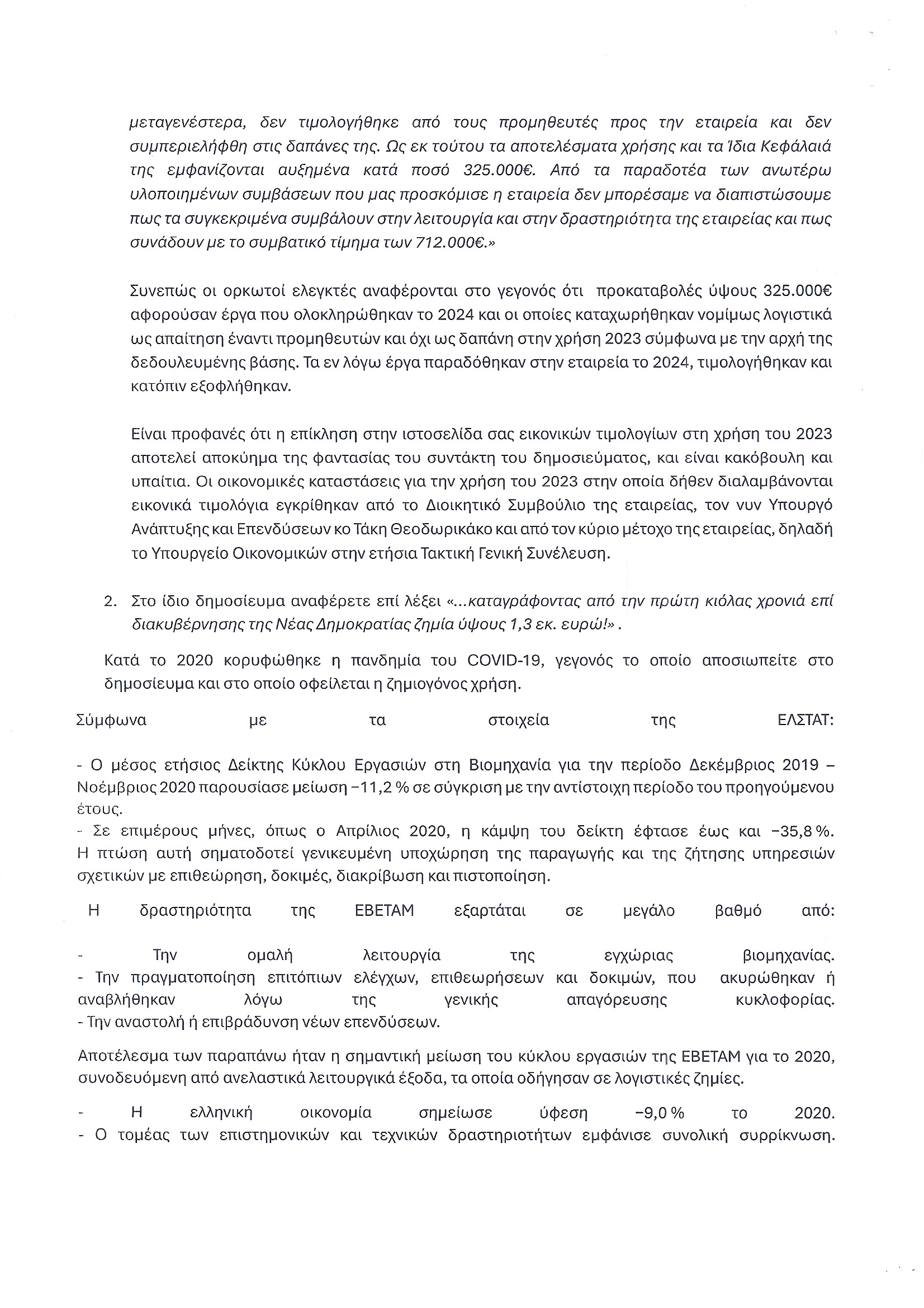 Σε απάντησή του, υπό τη μορφή εξώδικης διαμαρτυρίας – δήλωσης, ο πρώην αντιπρόεδρος της ΕΒΕΤΑΜ κ. Σκιπίων Αποστολάκης, αναφορικά με δημοσίευμα του magnesianews.gr, αναφέρει τα εξής: