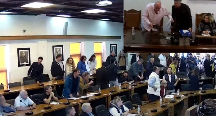 Ο κόσμος έγινε έξαλλος, οι διαμαρτυρόμενοι φώναζαν έντονα και ο Αχ. Μπέος είπε στον Θάνο Θεοδώρου να διακόψει και εκείνος από την πλευρά του έλυσε τη συνεδρίαση.